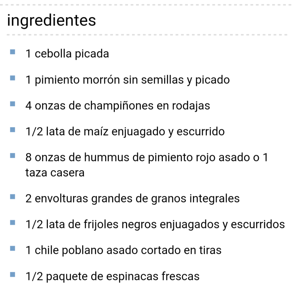 Cada envoltura proporciona aproximadamente :